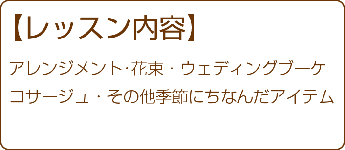 SCHOOL フラワーデザイン教室のご案内 HOME school 季節のお花をたっぷり使ったフラワーデザイン、はじめてみませんか? ~無料体験レッスン随時受付中 お気軽にどうぞ!~ ◆花器、ハサミはこちらでご用意いたします◆ ◆前日までのご予約をお願いいたします◆ 詳しくはメール・電話でお気軽にお問い合わせください。 お問合せはこちら